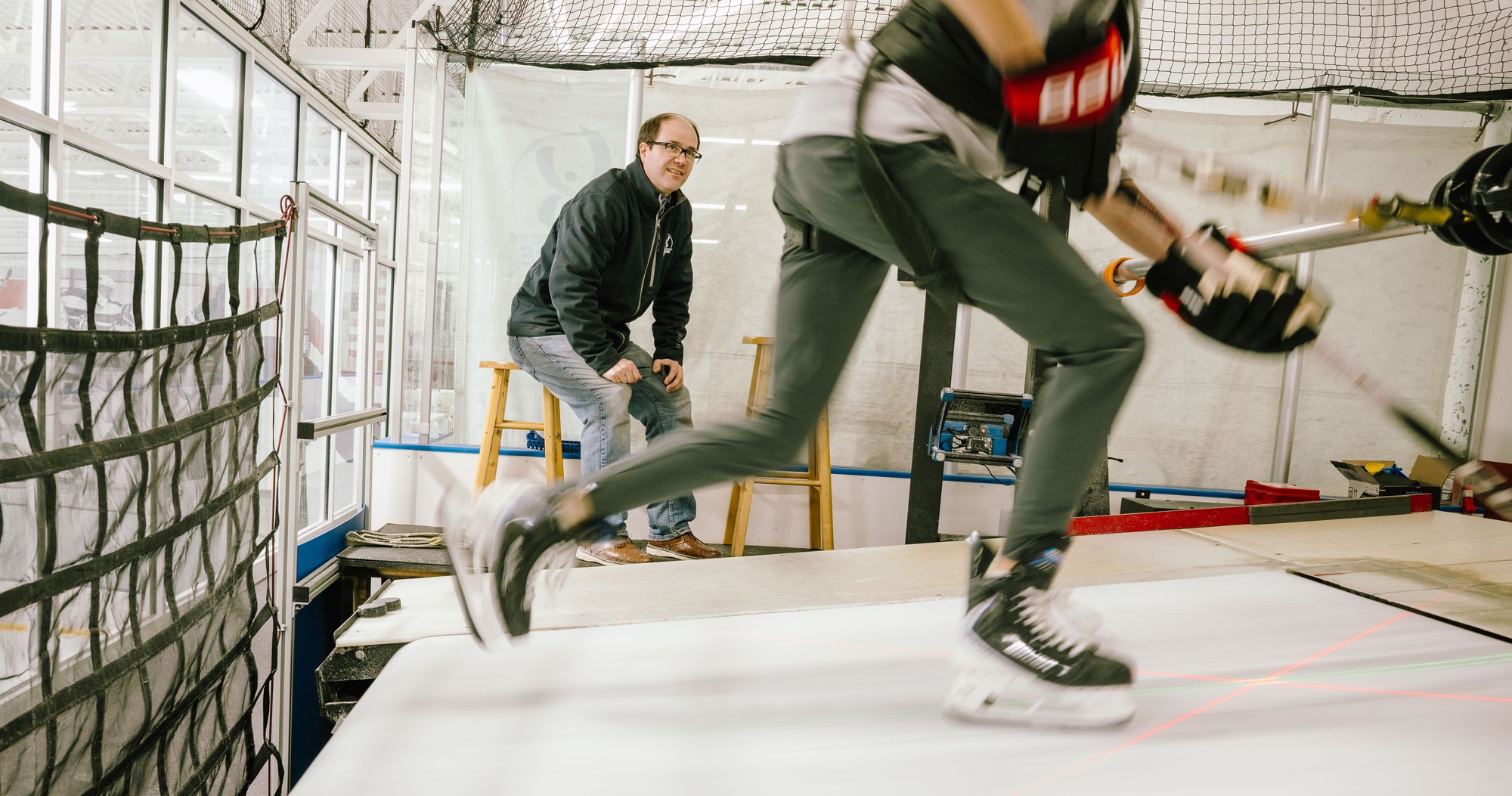 We work hard to ensure our coaches know how to use our venue to provide that quality in the training. We do this by selecting people who are good communicators with kids and training them in on how to use our training center to teach hockey while also filling any key holes in their knowledge about the skills of the game. As a result, we have a reputation for high-detail technique development within our lessons. This level of detail is not limited to skating coaching on our skating treadmill. We do the same with respect to puckhandling and shooting coaching in the synthetic ice area as well.